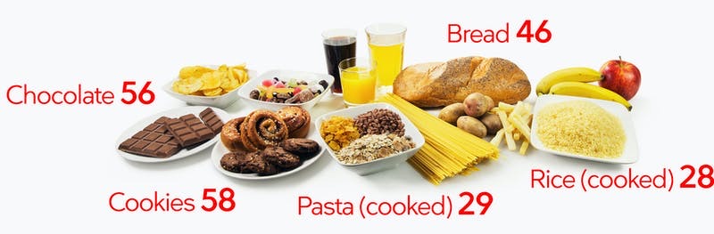 50 grams of carbs in high-carb foods: