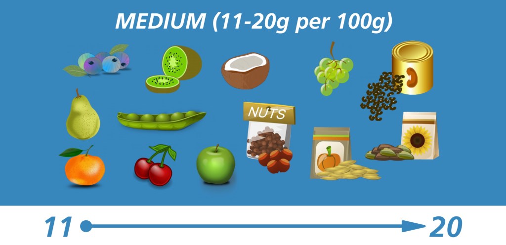 - Fats: Minimum intake should Women >30g a day & Men >40g a day. Try and get this from healthy fats such as oily fish, nuts and seeds, olive oil, avocado and olives